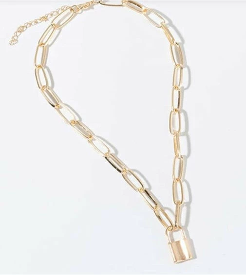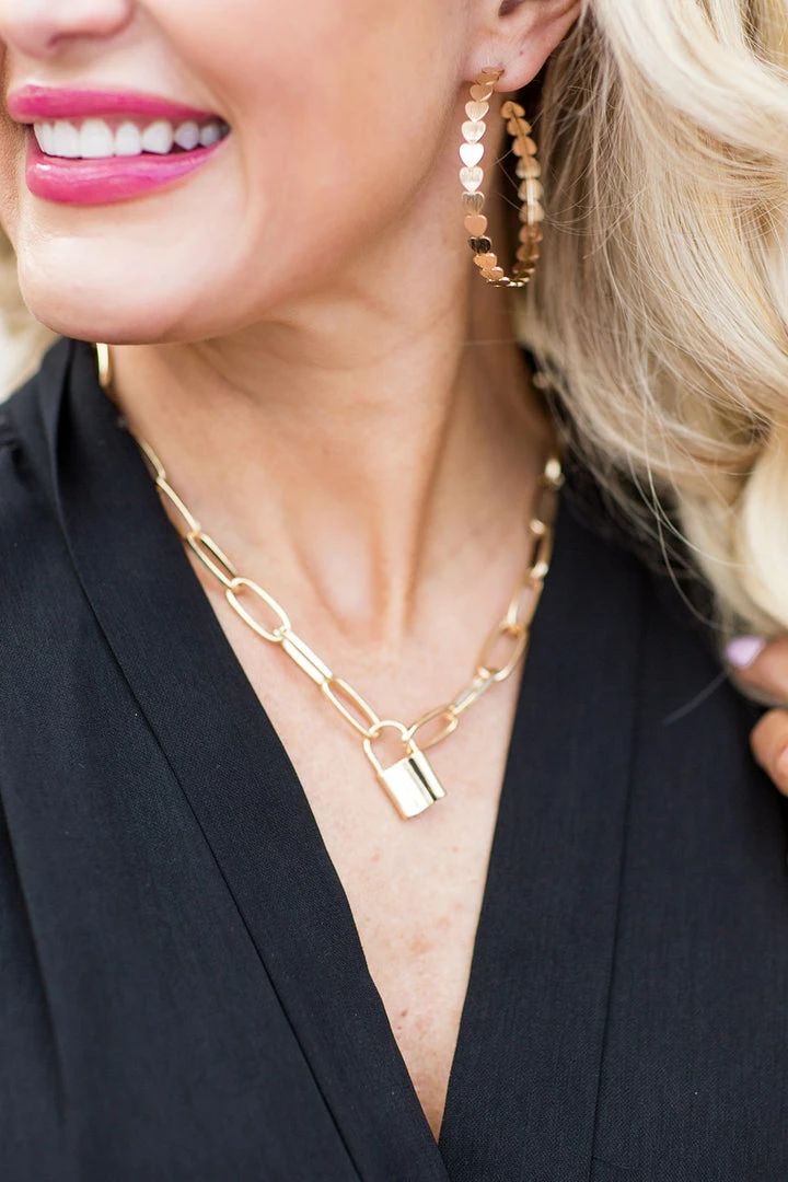 Simple yet chic, we love our new Chloe Chain Lock Necklace to pair with all your v-necks. Measures 20″.