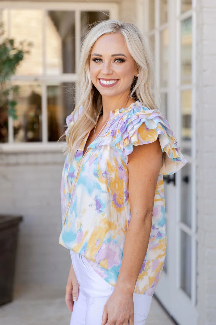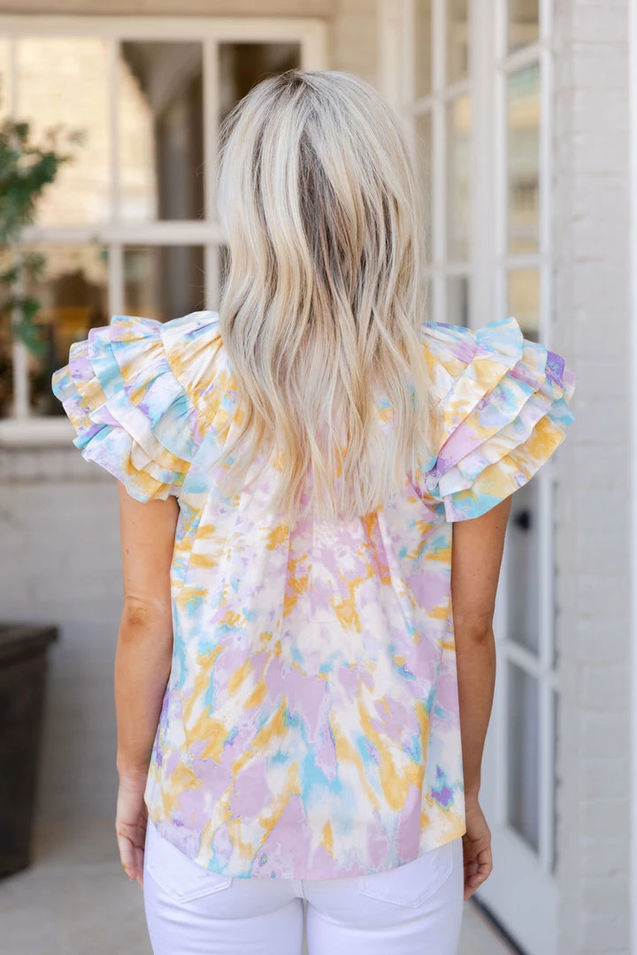 Instant sell out! Our Lena Top is a bestselling style of the season. We are loving the lightweight, blousy fabrication, dramatic tiered ruffles, tie front closure, and gorgeous pastel colors. This piece is so easy to throw on and works with not only white and light wash denim but a fun skirt as well. Wear this piece for your next vacation with the kids, brunch, shopping excursions and so much more. A total must have if you ask us!