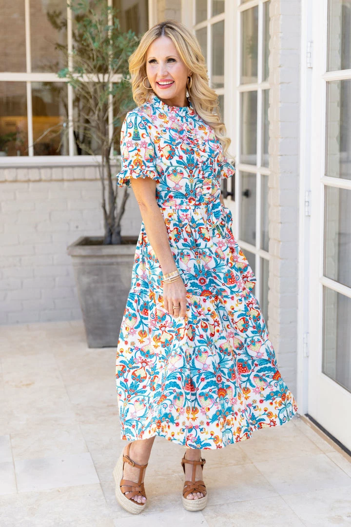 This classic floral dress is your new go to for all Spring and Summer outings! Our Sienna Dress is made with a lightweight fabrication, high neck line, and ruffled sleeves along a unique print that will bring all the compliments! Pair with wedges or sandals to complete your look.