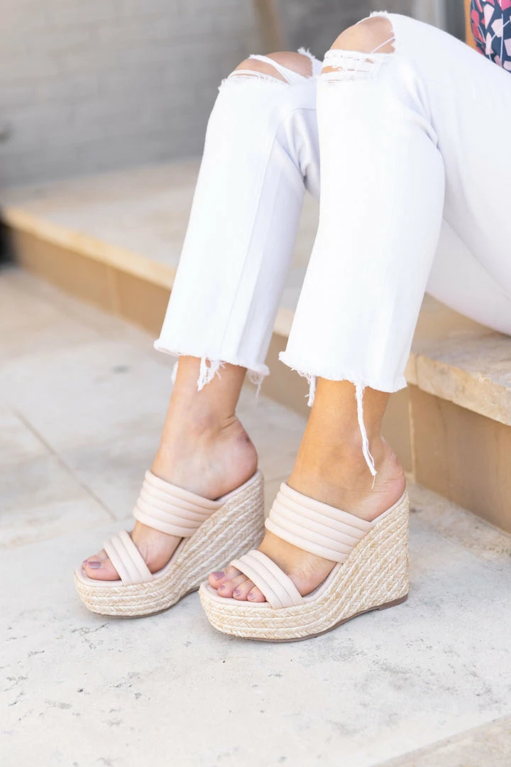 Our Carol Wedges by ShuShop are a higher end shoe style you NEED. These are our new go-to wedges this season. We the love the double neutral straps and platform style. Wear with your favorite white jeans or dress and get ready for the compliments!