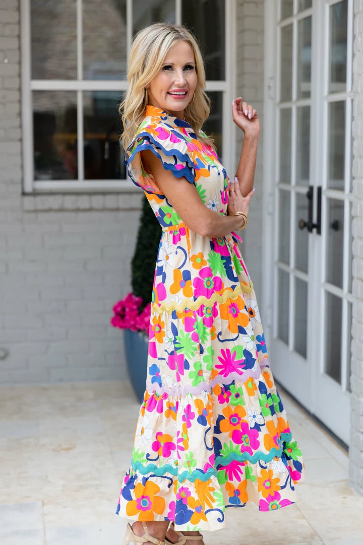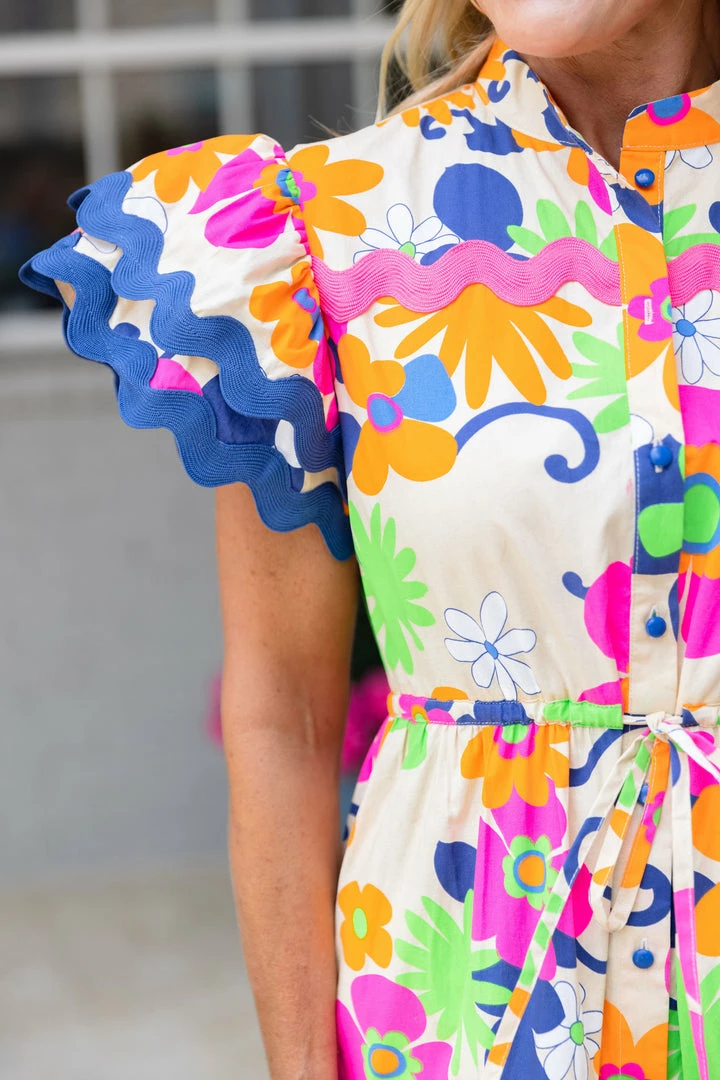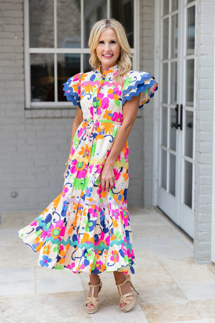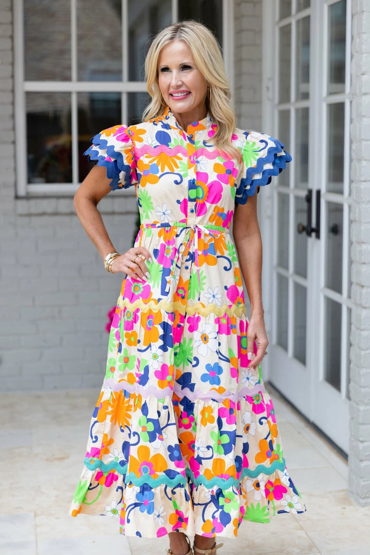 Absolute showstopper! Our Ivana Dress is a high end piece thats worth the splurge for the fun unique print, stunning layered flutter sleeves, and soft fabrication. The elegant buttons down the front and tie waist make it so easy to wear to any occasion you want to stand out for! Pair with neutral wedges or strappy heels and get ready for the compliments!