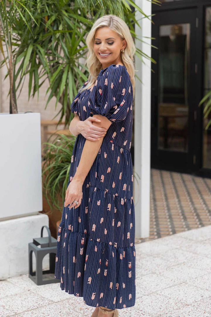 Versatile and chic! Our Ivanna Dress is so lightweight and flowy we’ll be wearing this for any occasion this season! We love the square neckline, puff sleeves, and tiered body of this look paired with wedges or sandals. Be ready for the compliments with this midi dress!