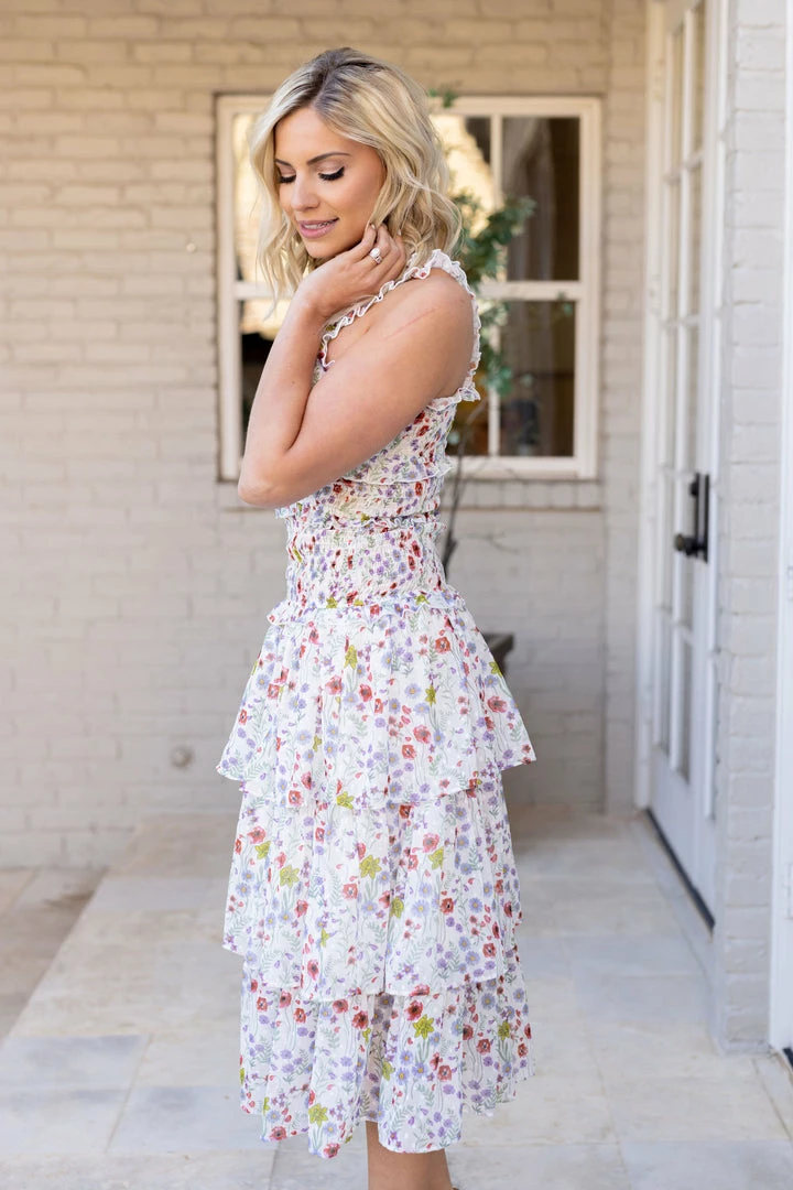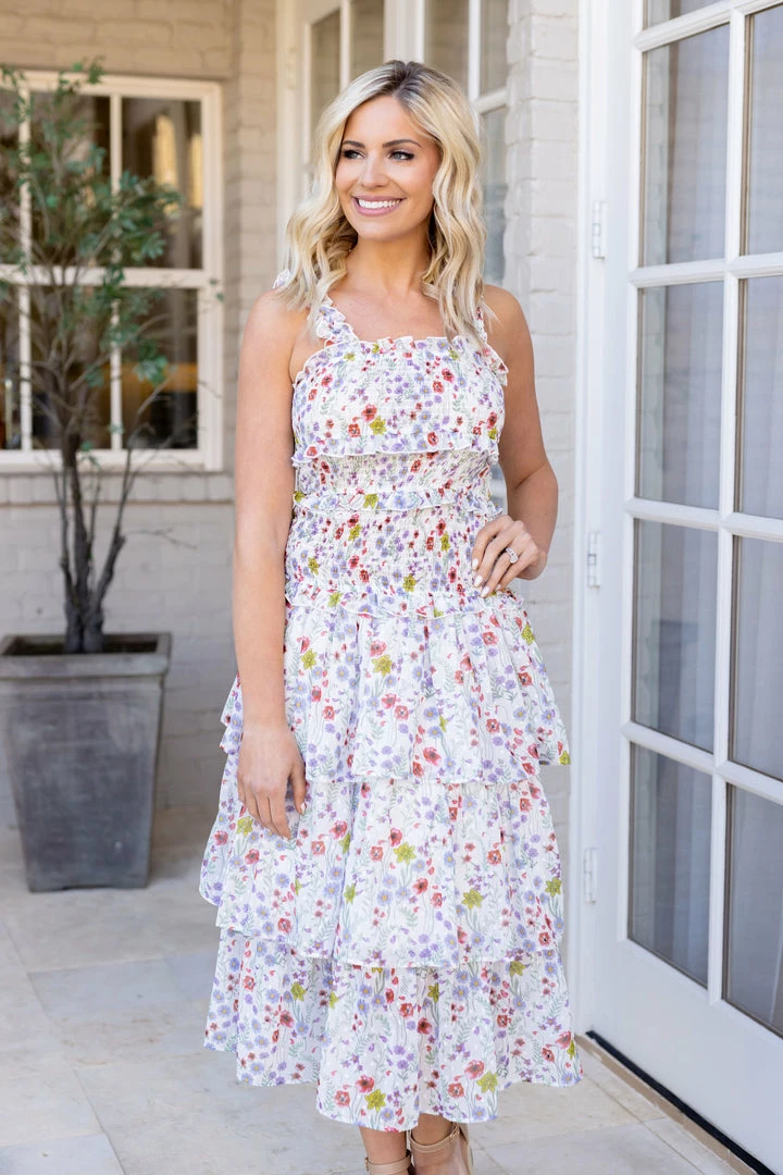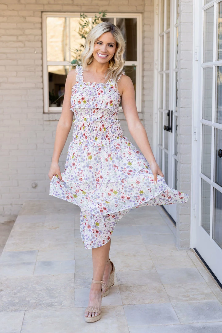 Simply Darling! Our Mandi Dress has us ready for Spring and Summer. This style is everywhere this season and we love the feminine ruched bodice and ruffle details. The beautiful construction makes for an on-trend look and the pretty floral print is colorful, yet subtle. Pair with your favorite heels or wedges!