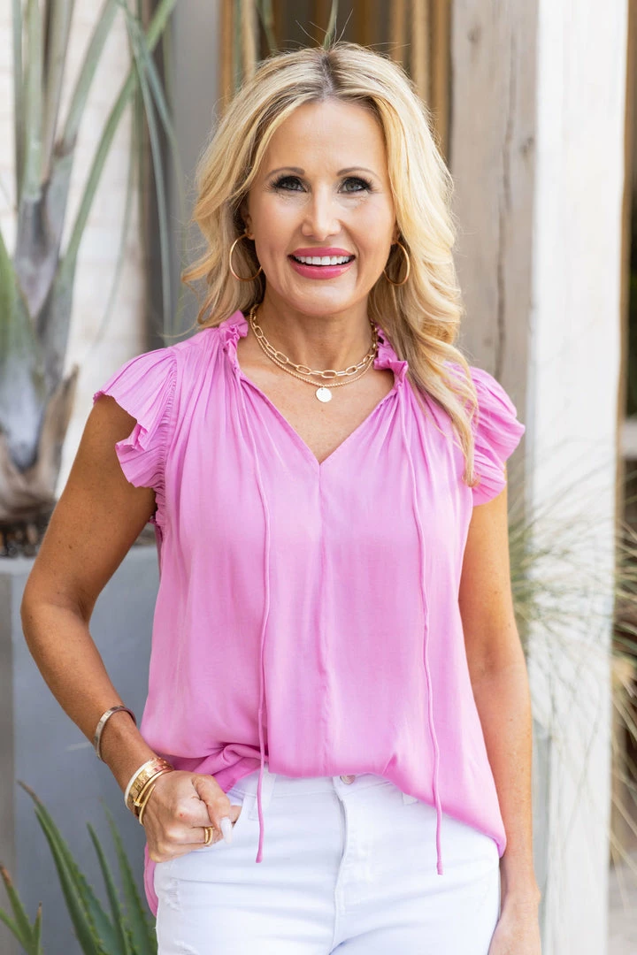 LOVE!! From one of our favorite brands, Current Air, the Caroline top is going to be a showstopper! Made of a soft, lightweight pink detailed material that drapes beautifully. A great option to pair with white denim and sandals or shorts. Don’t miss out on this one, ladies! Also comes in Lavender, White, and Black.