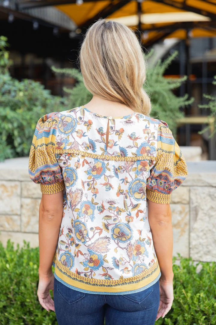This captivating combo of mixed prints is an absolute stunner! Made of a lightweight, breathable cotton fabrication with puff sleeves and a cutout in the neckline, our Barbara Top by Current Air is an Emily’s pick as a pre-Fall must have. The gorgeous print combination gives this piece a chic, expensive vibe that is sure to be a compliment magnet. Pair now with white denim and wedges and dark wash denim and booties in the Fall.