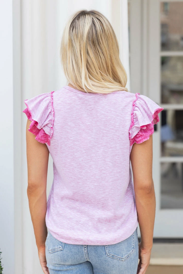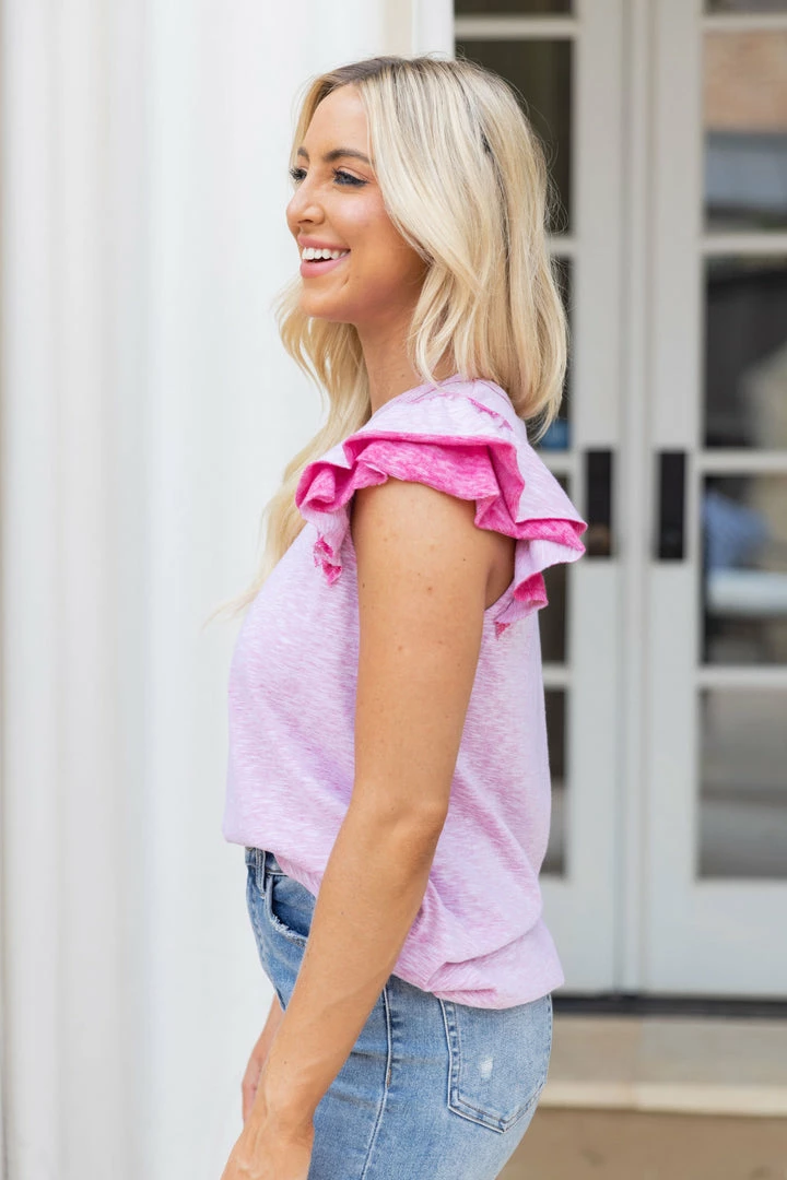 Cute AND comfy?! Instant add to cart! Our Genevieve Top in Pink features a super soft and lightweight t-shirt material that’s so easy to wear with such fun flutter sleeves. We love this piece for the daytime paired with cutoffs and sneakers and for casual evenings with your favorite denim and wedges! Also comes in Mint.