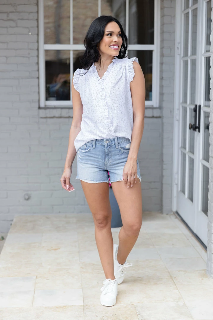 Our Rowan Top is so sweet and feminine! With the delicate floral pattern, stunning ruffle detailing, and lightweight fabric – we can’t get enough! Pair with cutoffs during the day for a casual look or dress it up with jeans and wedges for an elevated evening look.Â