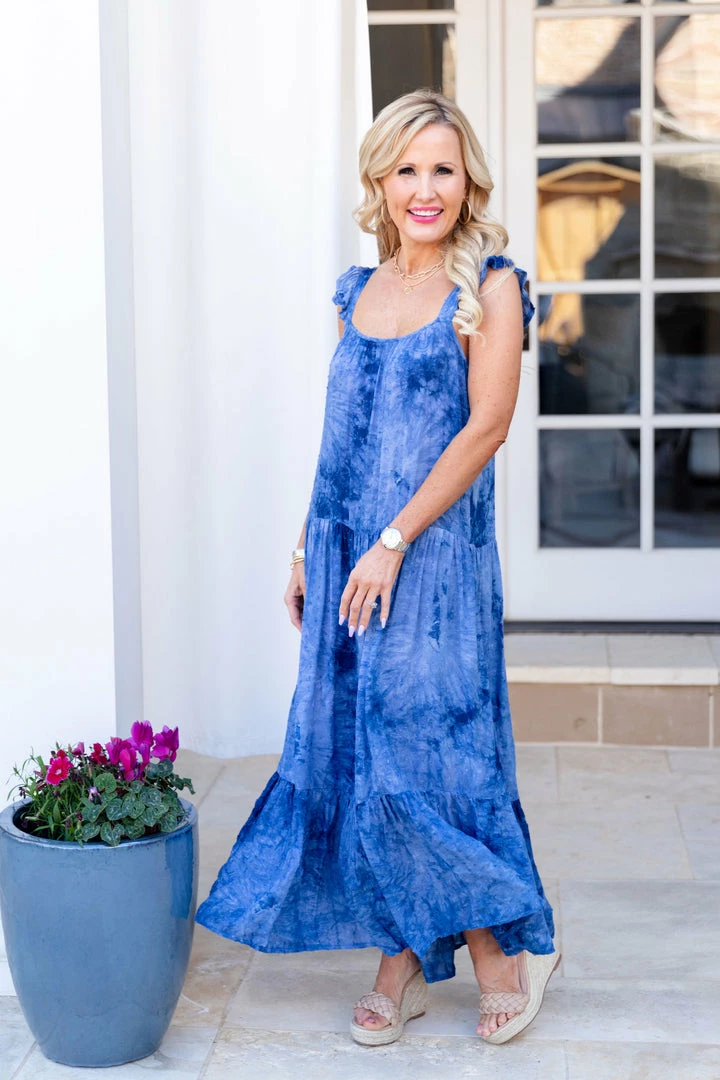 What’s not to love with this tie dye maxi?! Our Hallie Dress by BB Dakota is a super lightweight, tiered body with ruffle shoulders and swiss dot fabric. Stay light and cool for the summer for your next daytime wedding, brunch, or beach trip! Perfect to pair with red for patriotic holidays.