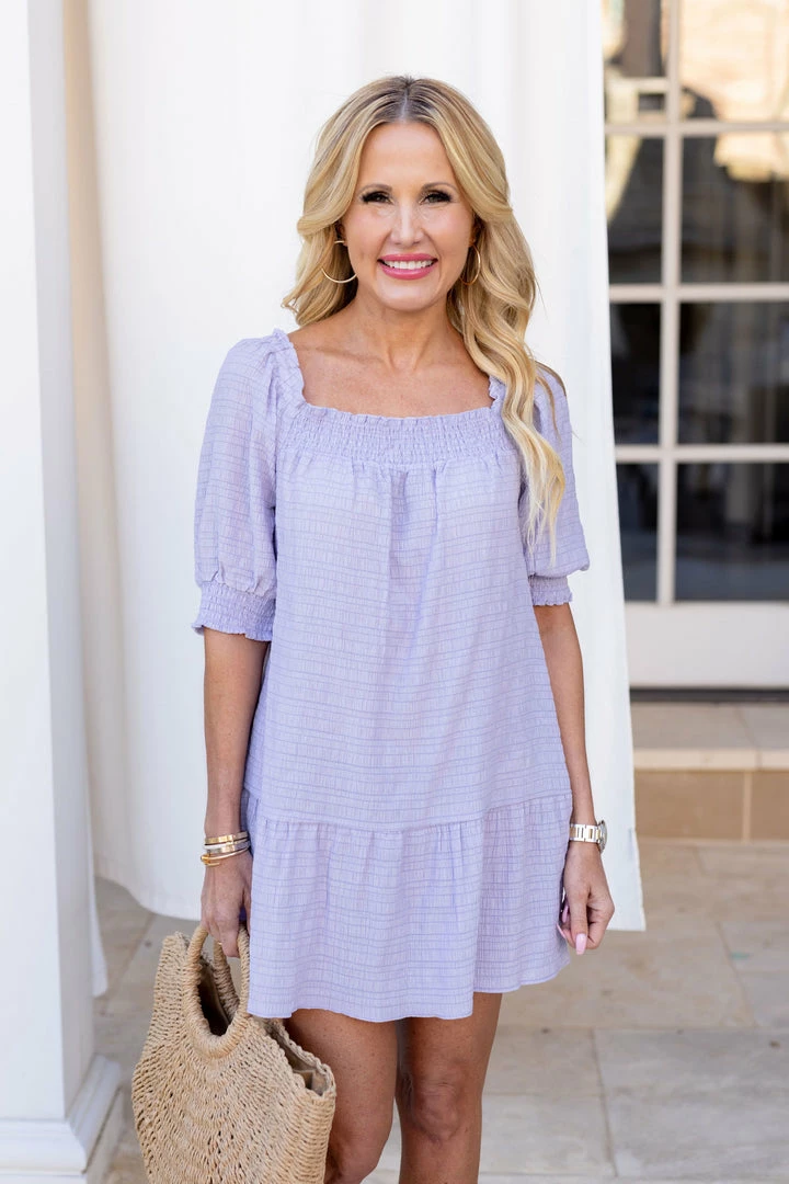 How cute is this piece from our Two Peas x Avara Collection?! Our Nadine Dress by BB Dakota is super soft and lightweight completed with a smocked square neckline, bishop sleeves, and a subtle stripe print. Pair with wedges or sandals and wear to any kind of occasion from a casual day out to an evening on the town! Â