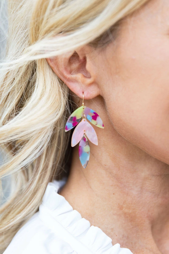 Our Kelsey Earrings in Multi will compliment any neutral outfit with these pops of color! Dress up any of your summer tops and get ready for the compliments with this fun accessory! Also comes in Green.