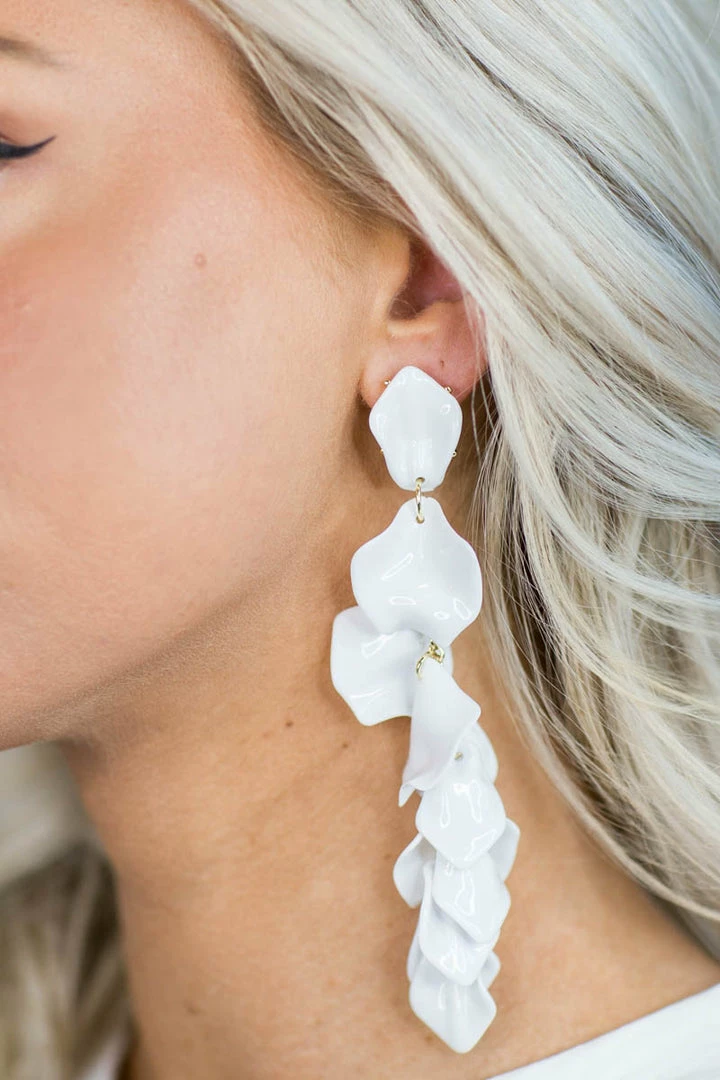 Get a statement look without the statement price! Our Felicity Flower Petal Earrings in White are such a fun addition to your vacation looks. Also comes in Yellow and Teal.