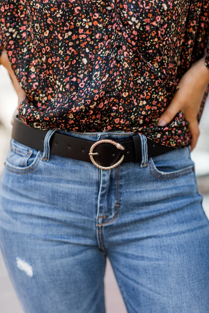 The Kendall Snake Belt in Black is a great way to elevate your look without breaking the bank! A perfect accessory for almost any outfit. Also comes in Brown and Taupe.