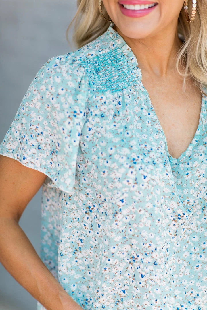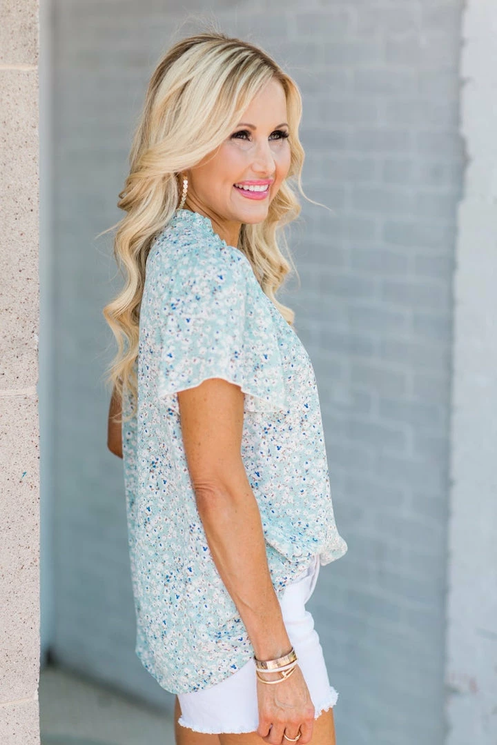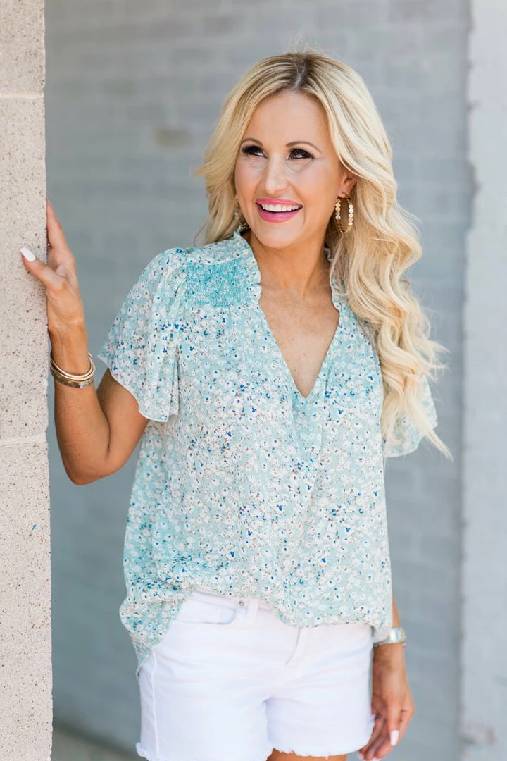Bring on the flirty florals! Our Janey Top is going to be your new favorite piece. The lightweight material will keep you cool in the transitional weather and the small floral pattern is in this season. The deep v-neck creates the perfect spot for your favorite necklace and the ruched detail on the sleeve elevates this basic. Wear it to your next lunch date, shopping day, and brunch; the options are endless!