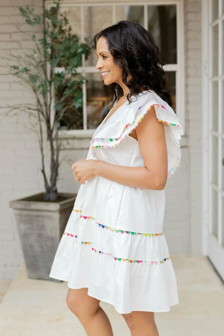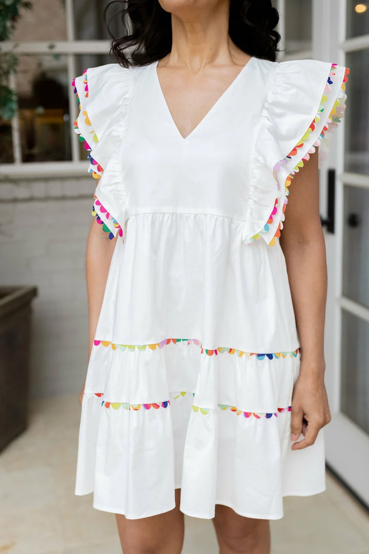 Crosby by Mollie Burch is a high-end brand that aims to empower women and aid in the fight against human trafficking. The price tag may be higher, but it is worth the price for the quality, unique styles, and mission you are supporting! Completed with a lightweight fabrication, multicolor detailing, and flutter sleeves; our Holden Dress is feminine perfection.Â
