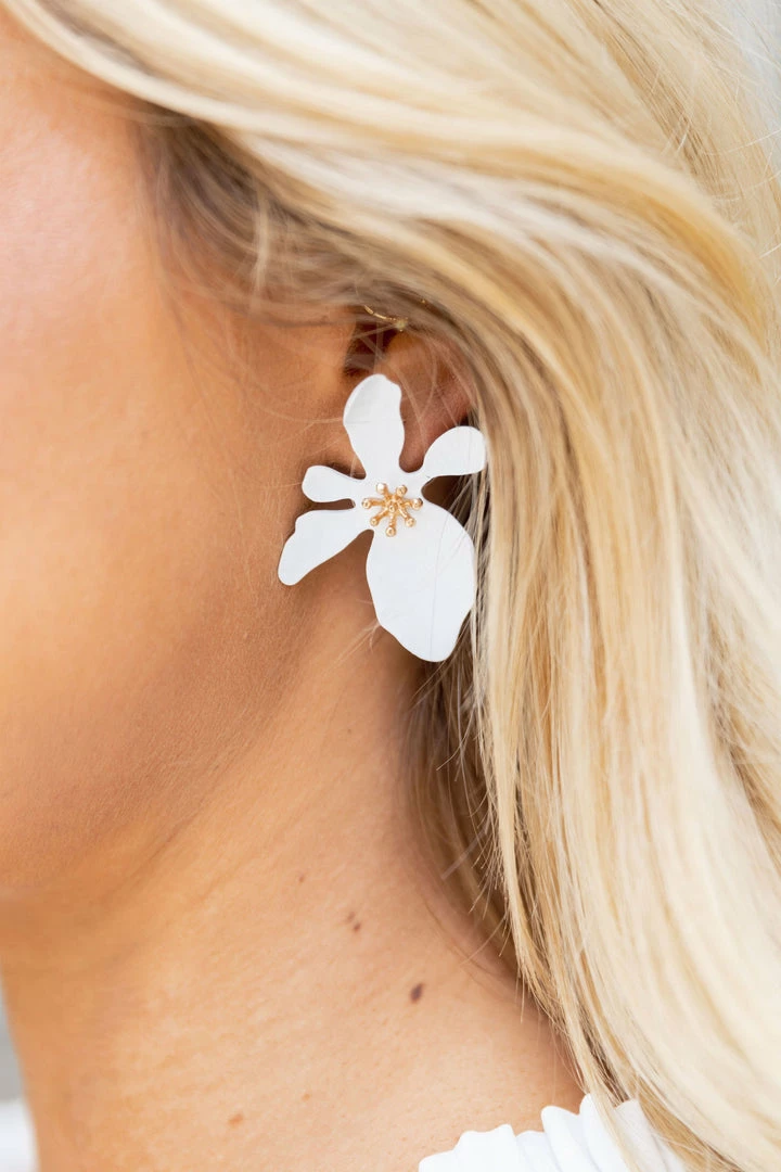 Statement accessories are perfect to dress up any solid tops and dresses and we are loving our Jana Flower Earrings in White! Lightweight and comfortable to wear all day, get ready for the compliments! Also comes in Pink.Â