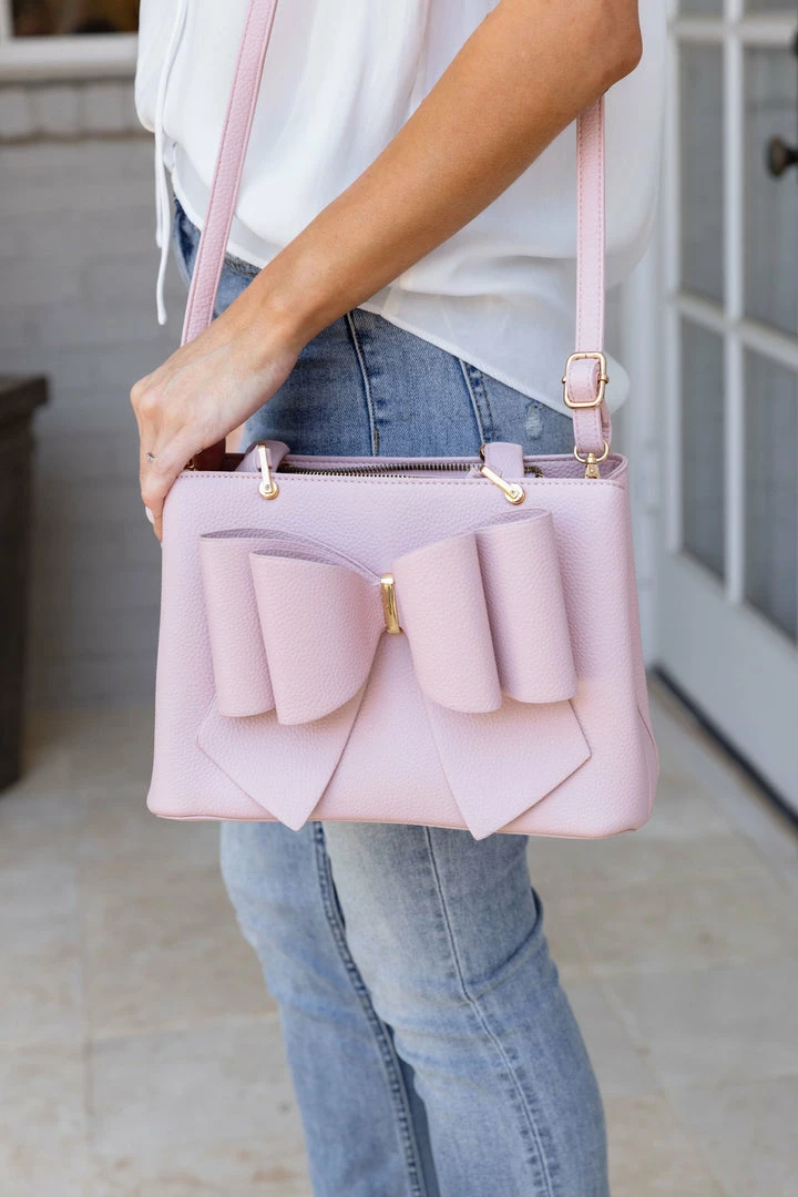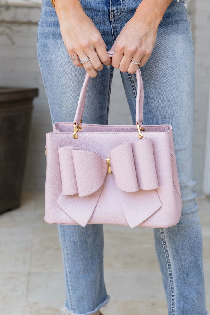 How adorable is this bag?! Our Jenna Bow Bag in Pink is so chic and we can’t get enough of the bow detail! Made with vegan leather and constructed with both a magnetic and zip closure. Also comes in Black and Gray.Â