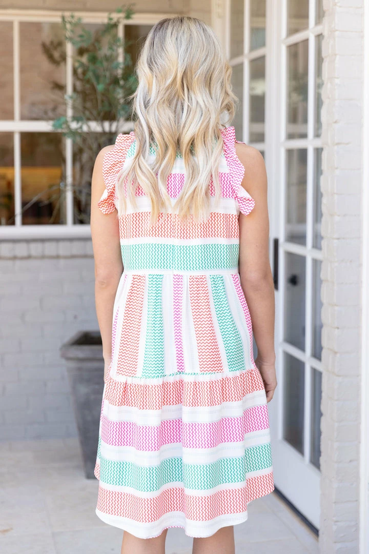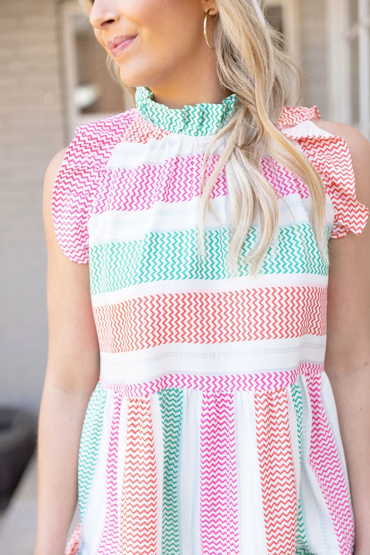 This dress is Spring perfection! Constructed with a lightweight fabrication, ruffle sleeves and high neckline, our Sully Dress was made for all your special occasions OR casual outings! Pair with a nude heel or wedge to complete the look.