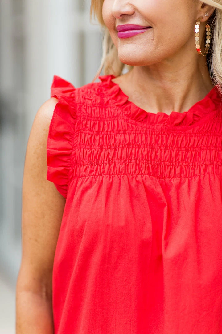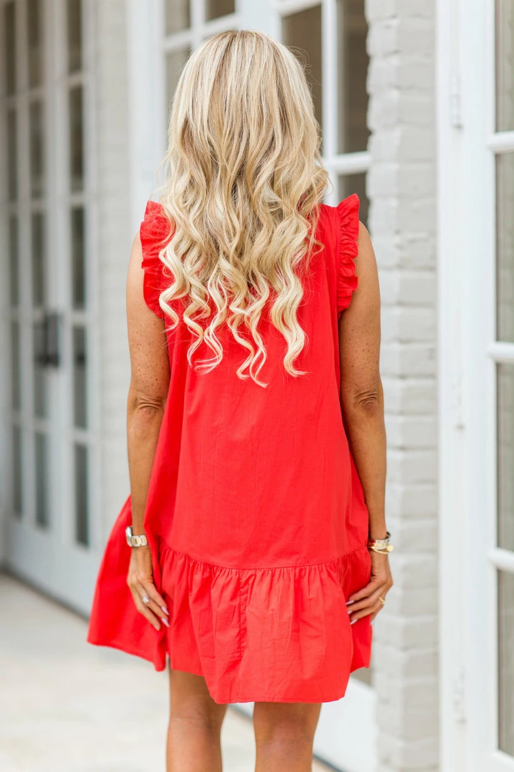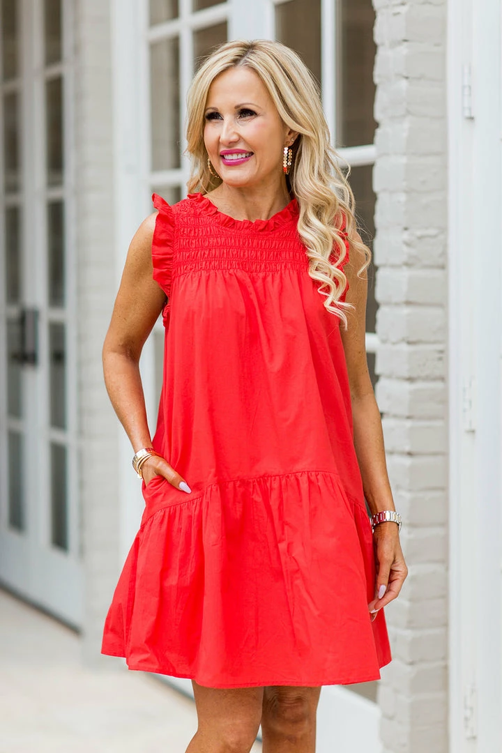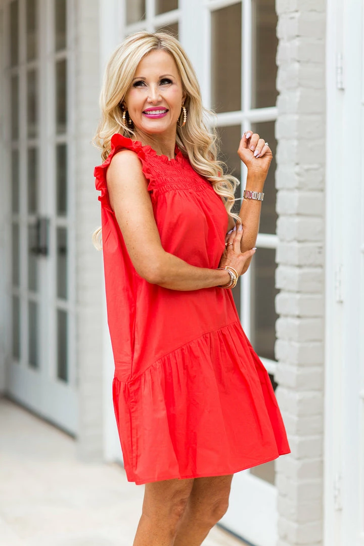 BESTSELLER ALERT! The Brooklyn Dress in Red is one of our most popular dresses for warmer weather. The lightweight, crisp poplin fabrication will keep you cool and looking cute in the heat and we love the ruffle hem and smocked bodice. This dress looks GREAT on and we can’t wait to turn heads in it this Summer! Also comes in Blue, Pink, Green, Black, Custard Cream and gingham prints.
