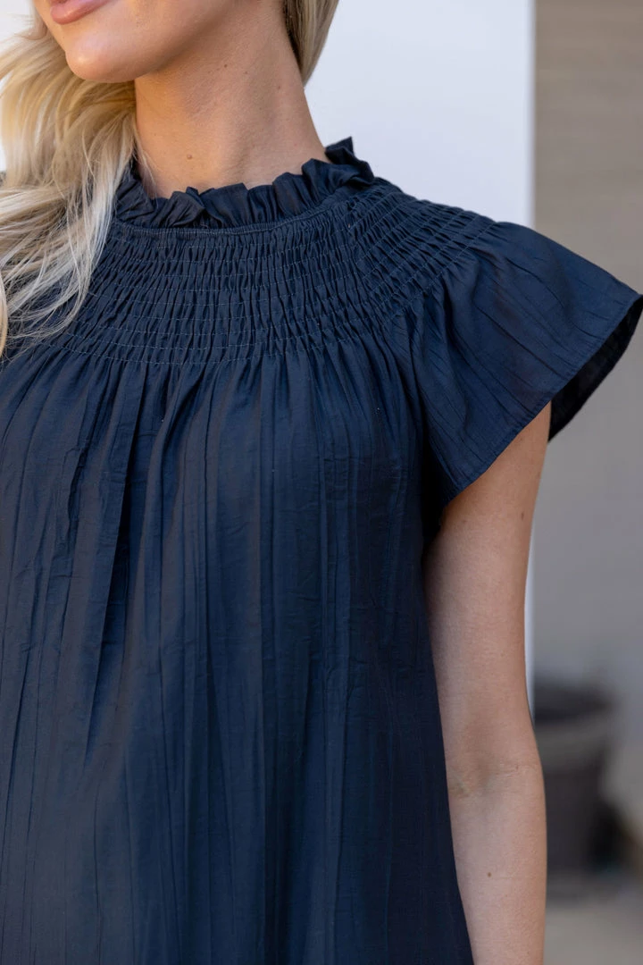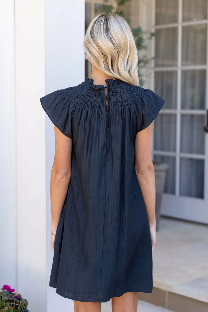 How darling is our Susana Dress?! This piece is that versatile staple that you’ll end up wearing on repeat now and well into Fall. We love the classic style elements of this dress – the smocked neckline and flutter sleeves give the piece an elevated, chic look. We recommend pairing with neutral wedges or strappy heels.