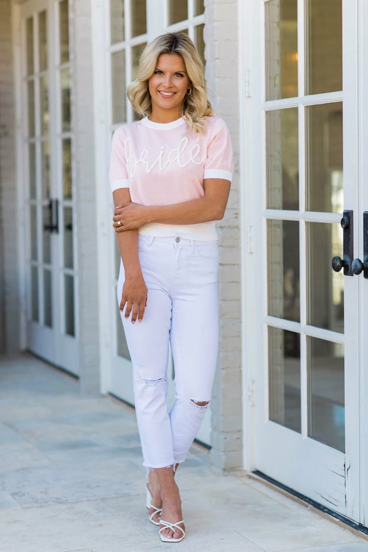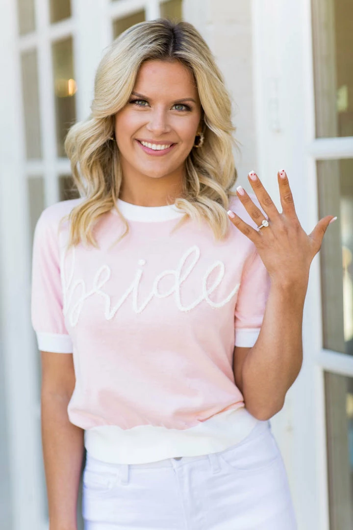 Calling all Brides-To-Be! Look absolutely stunning in our Bride Sweater for your next event. This top is perfect for you to show off your post-engagement glow! The Queen of Sparkle design is lightweight, breathable, and soft. The Bride wording is done in white tinsel, which will be a true show stopper! Don’t wait to shop this sweater, it will go fast!Â