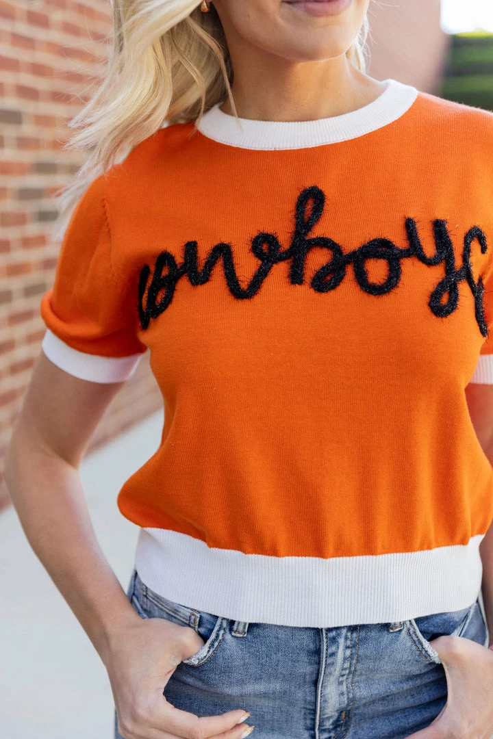 Calling all OSU fans! We can’t wait for game day to wear our new Cowboys Sweater! We are so excited to be able to show our Cowboys some love. This Queen of Sparkles design is lightweight, breathable and soft. The Cowboys wording is done in a metallic black tinsel that is beyond fun. When they ask where you got this adorable piece, send them our way!