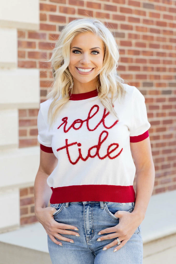 Calling all Alabama fans! We can’t wait for game day to wear our new Roll Tide Sweater! We are so excited to be able to show Crimson Tide some love. This Queen of Sparkles design is lightweight, breathable and soft. The Roll Tide wording is done in a metallic crimson red that is beyond fun. When they ask where you got this adorable piece, send them our way!Â