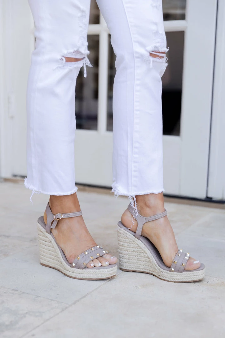 Our Tiffany Wedges are perfect to elevate any look! With a rock stud look similar to Valentino, these will be your new go to this season. Wear with your favorite denim or dresses for a comfortable, chic look!