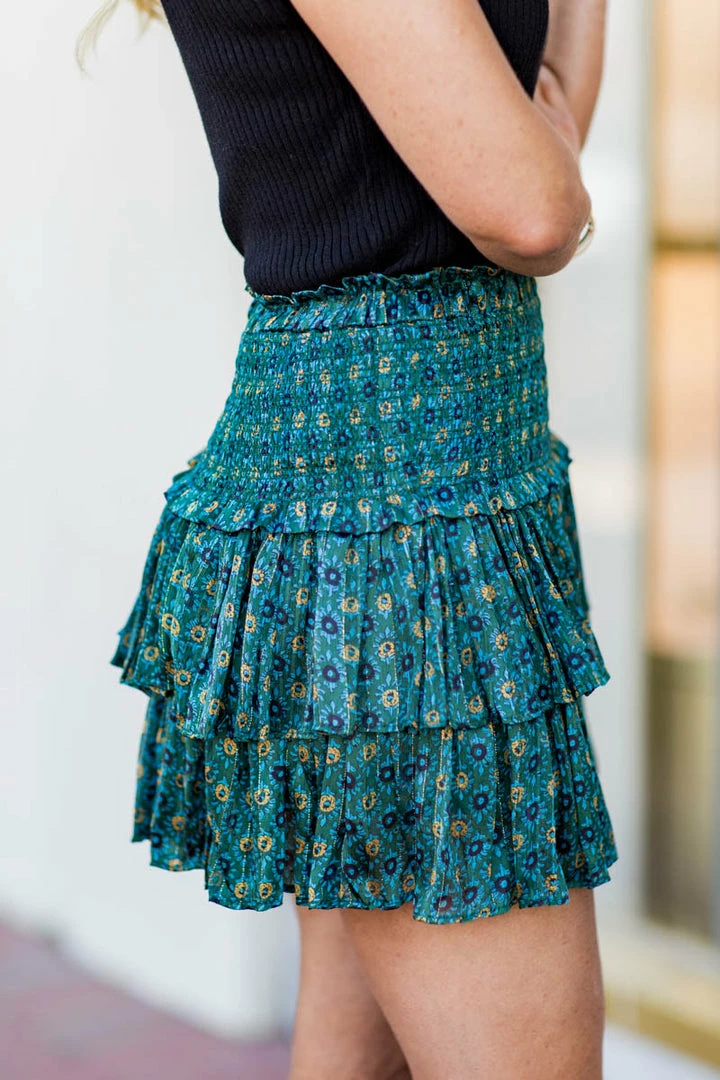 How fun is this pattern?! The Sally Skirt, complete with ruffles, a stretchy waistband, and blue and yellow floral pattern, is a fan-favorite. Because of its level of comfort and high quality, it is easy to pair with a bodysuit, t-shirt or turtleneck. Throw on some knee high boots for an upscale look or sneakers for a casual look and you’re ready to hit the town!