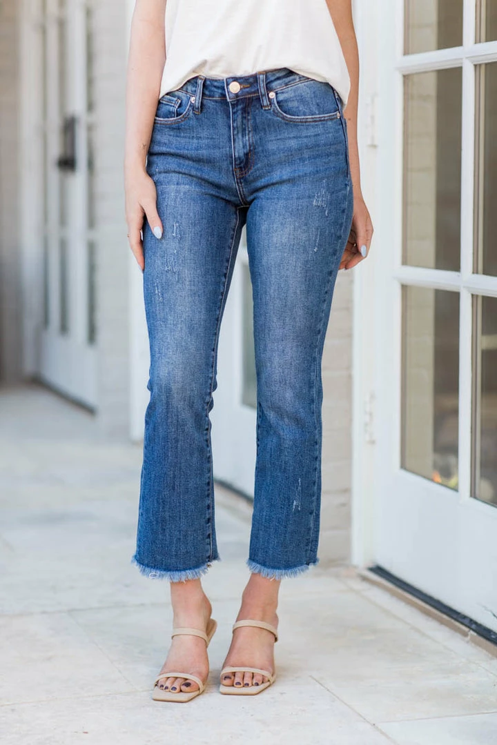 BESTSELLER AT AVARA!!! The Jessica Jeans are one of our most popular styles – great for everyday wear. The fitted, straight leg with slight crop is a flattering style that hugs you in all the right places without being a true skinny jean. The raw hem adds an on-trend finish out. They’ll become your go to favorites!!