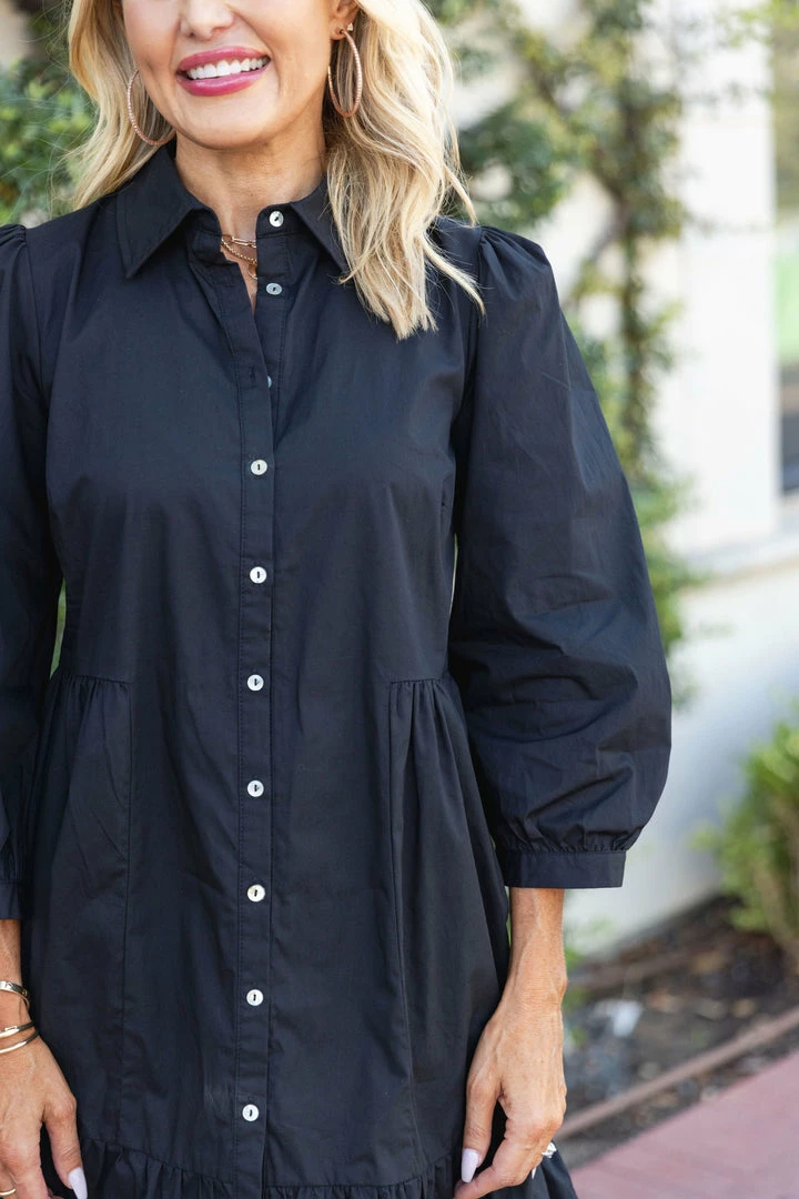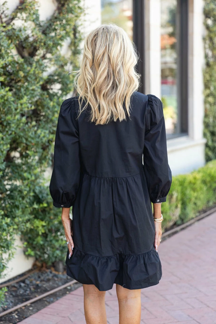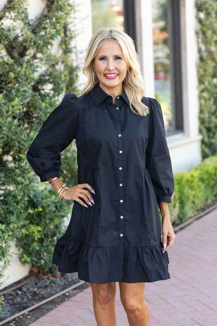 Just as effortless and it is essential, our Rosie Dress by Deluc is a timeless LBD for Fall and seasons to come. Made of a crisp and lightweight fabrication, this piece is perfect for both day or night. The button down front, long sleeves, and tiered structure gives this dress an elevated look with a flattering fit. Pair with white sneakers for a casual look or dress it up with wedges or booties to transition into cooler weather.
