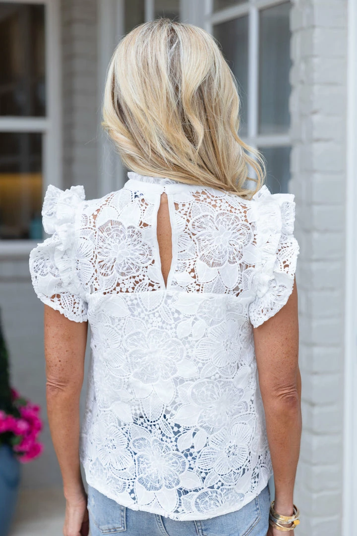 Our Monica Top is a MUST HAVE! The eyelet lace, layered flutter sleeves, and high neckline makes this piece so chic and sophisticated, plus its fully lined for perfect coverage! We love this piece for family functions, lunch with the girls and so many other occasions this Summer. Pair with your favorite blue jeans or cutoffs and get ready for the compliments!