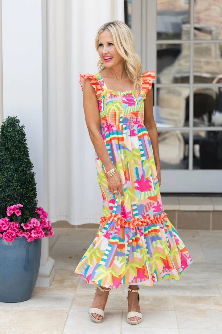 Crosby by Mollie Burch is a high-end brand that aims to empower women and aid in the fight against human trafficking. The price tag may be higher, but it is worth the price for the quality, unique styles, and mission you are supporting! Our Wren Dress in Harbor Island is no exception; the fun print and stunning details will make you an absolute showstopper this season while the lightweight fabric and flutter sleeves will keep you cool!