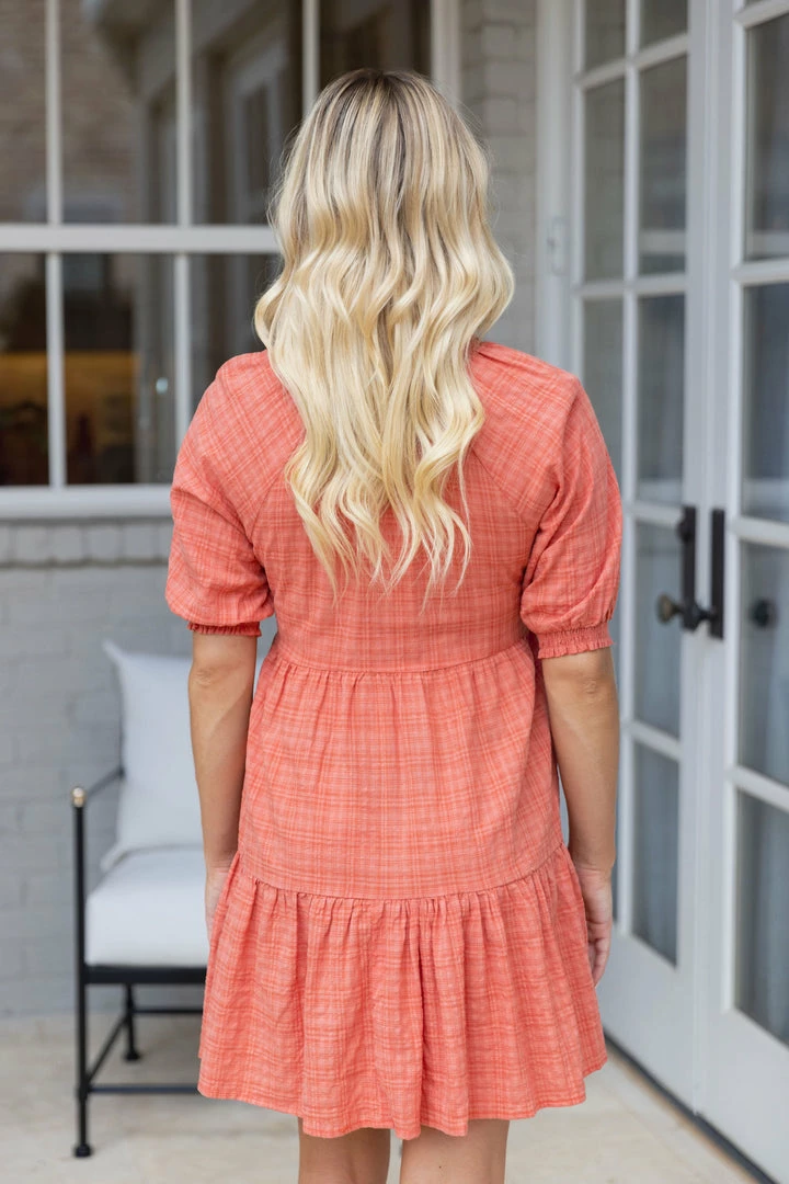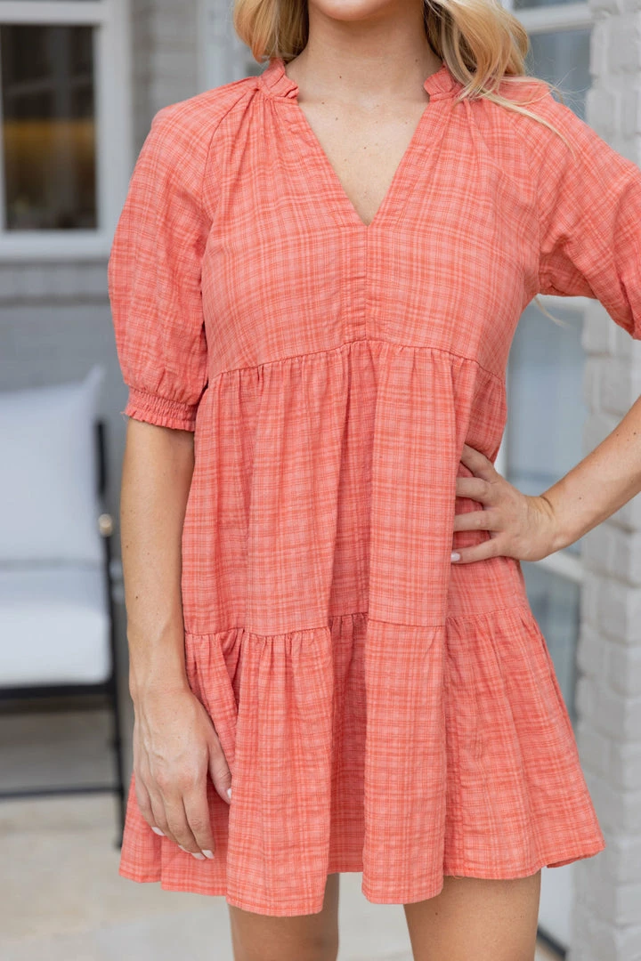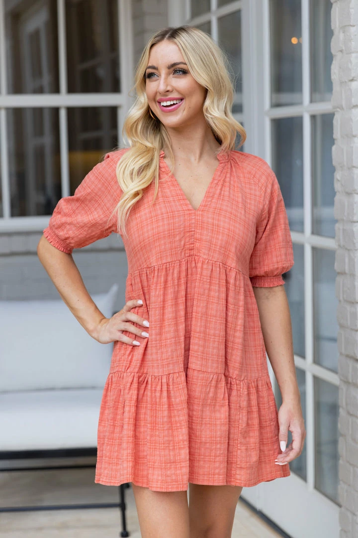Love! Our Tash Dress by BB Dakota is constructed with a soft, lightweight fabrication thats comfortable for all day wear. The figure flattering style with a v neckline, tiered structure, and puff sleeves is easy to wear and we love the sleeve length for a bit of arm coverage. Dress it up with platforms for the Summer or dress down with your favorite sneakers for game day this Fall.Â