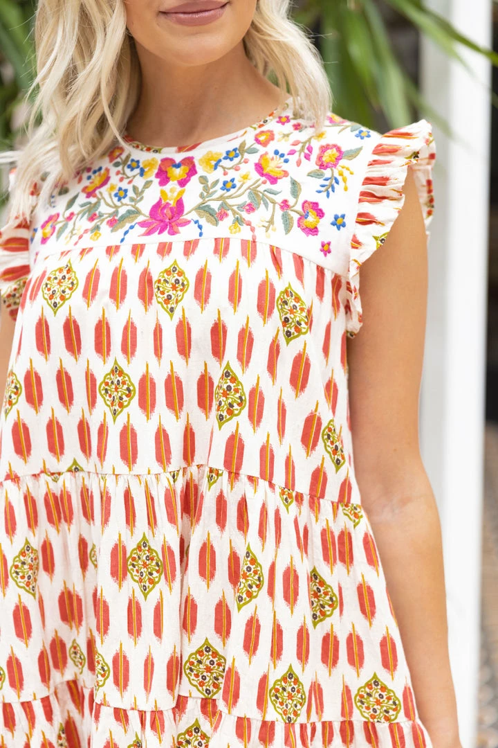 This look from our Hello Happiness x Avara Collection is so easy and versatile for the Summer! Our Charlene Dress by THML is absolutely stunning with details like the floral embroidery along the neckline, flutter sleeves, and our favorite – pockets! Wear to your next brunch with the girls or date night! Pair with your favorite wedges to complete the look.Â