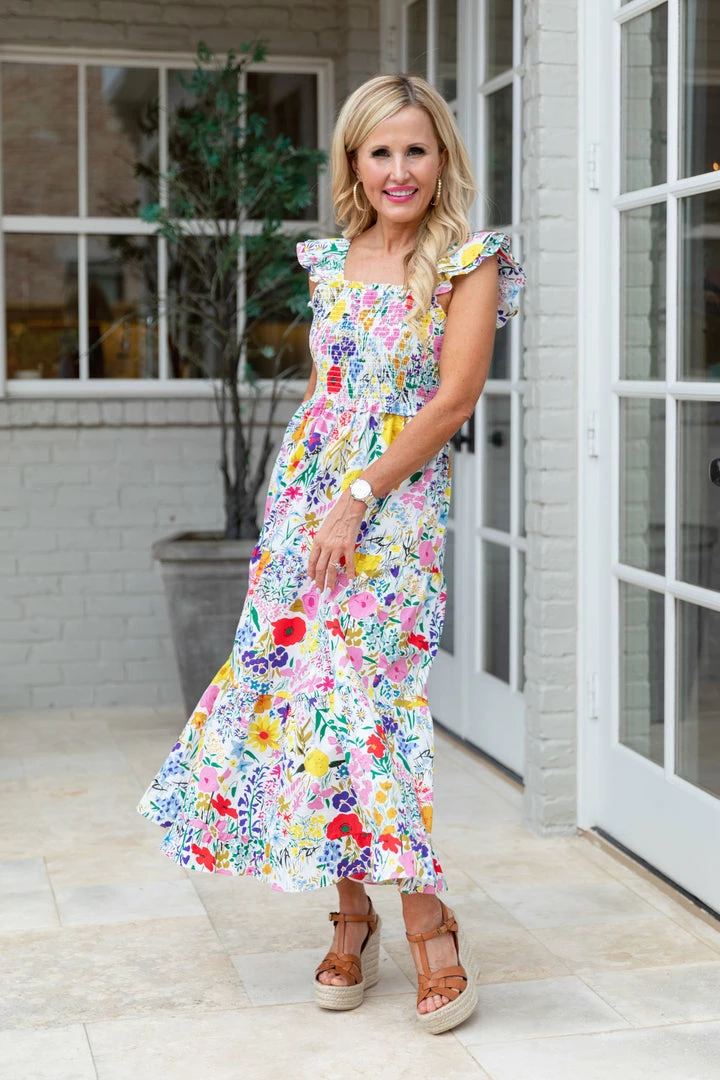 Feminine perfection! Our Gillian Dress by THML will be your go to for all your events this Spring and Summer. We love the gorgeous bright florals, smocked bodice and flutter sleeves. Feel like a million bucks in this dress without the expensive price tag. Pair with your favorite wedges or sandals. Don’t wait on this one ladies, it won’t last long!