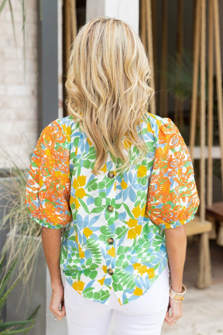 A Tanya x Avara fan favorite! Our Owen Top by THML is the definition of resort chic! With lightweight fabrication, a high neck, button back detail, a floral design and embroidered puff sleeve, you can’t go wrong with this high quality must-have. Wear it to your next destination and look the most stylish while doing it. Pair with white jeans or shorts for the best look.