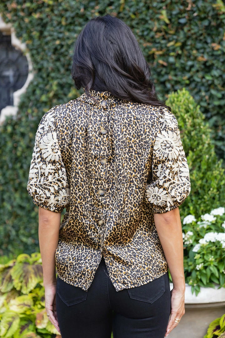 BESTSELLER ALERT!! Similar to the bestselling Dottie Top, our Tabi Top by THML is a chic, unique piece that will elevate your pre-Fall look. The silky, lightweight fabrication is easy to wear and the gorgeous muted gold embroidery on the sleeves gives the piece an expensive look. From the smocked high neckline to the wooden buttons down the back, this fit flatters. Pair with your favorite denim or black jeans and strappy sandals for a look that guarantees compliments.