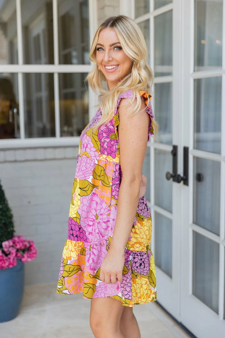 Vacation ready! Our Taytum Dress by THML features the sweetest babydoll fit with a v neckline and flutter sleeves. The gorgeous floral print will become an instant favorite in your dress collection and is so versatile for all your Summer events you have lined up. Pair with wedges or sandals for a chic and feminine look.
