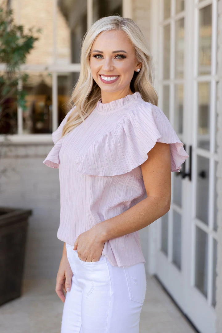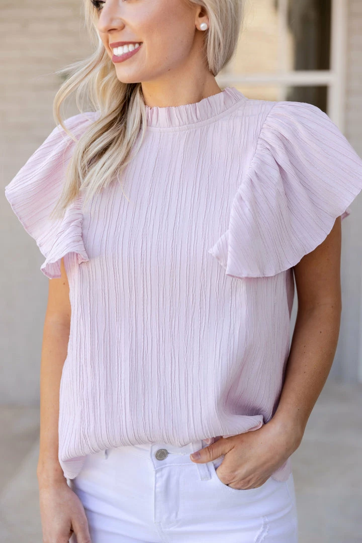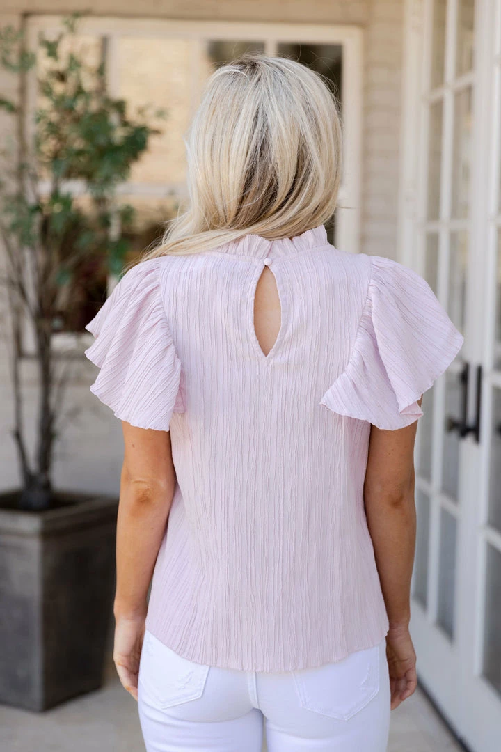 Our Heidi Top by THML is pastel perfection. We are loving the lightweight fabrication, textured bodice, flutter sleeves a high gathered neckline and baby pink coloring. Wear this during transitional weather, looking phenomenal with a jean jacket if needed. Pair with your favorite jeans and you are set.