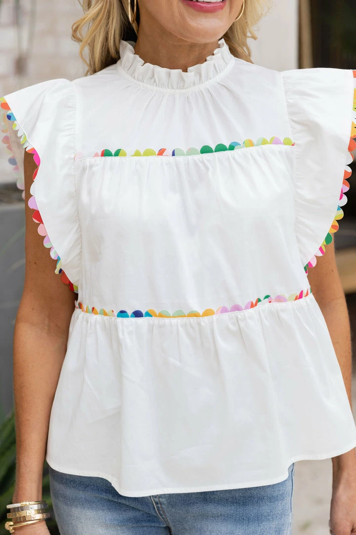 Crosby by Mollie Burch is a high-end brand that aims to empower women and aid in the fight against human trafficking. The price tag may be higher, but it is worth the price for the quality, unique styles, and mission you are supporting! Completed with a lightweight fabrication, multicolor detailing, and flutter sleeves; our Blakely Top is feminine perfection.Â