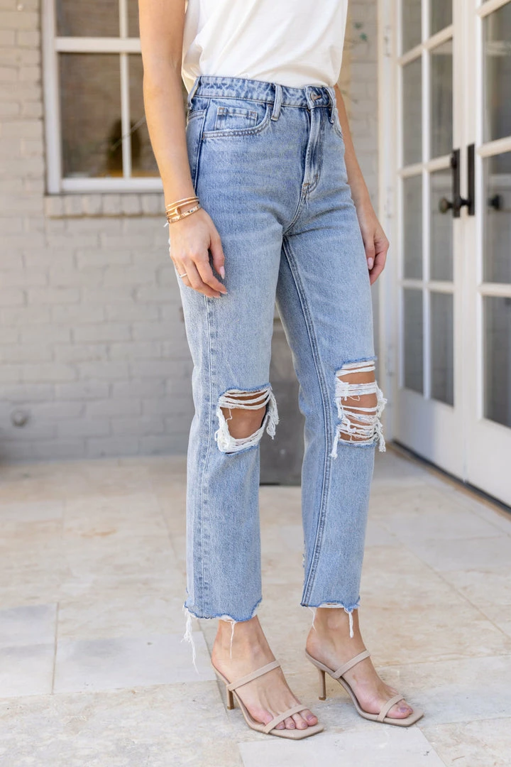 Shake up your denim game with our Davi Jeans. These high-rise, slim-straight style jeans are so on-trend this season. The slit knee style is super versatile and can be worn casually with your favorite sweater and sneakers or dressier with a fitted top and neutral strappy heels. We promise the flattering fit and comfortable feel will make these a favorite in your denim rotation.